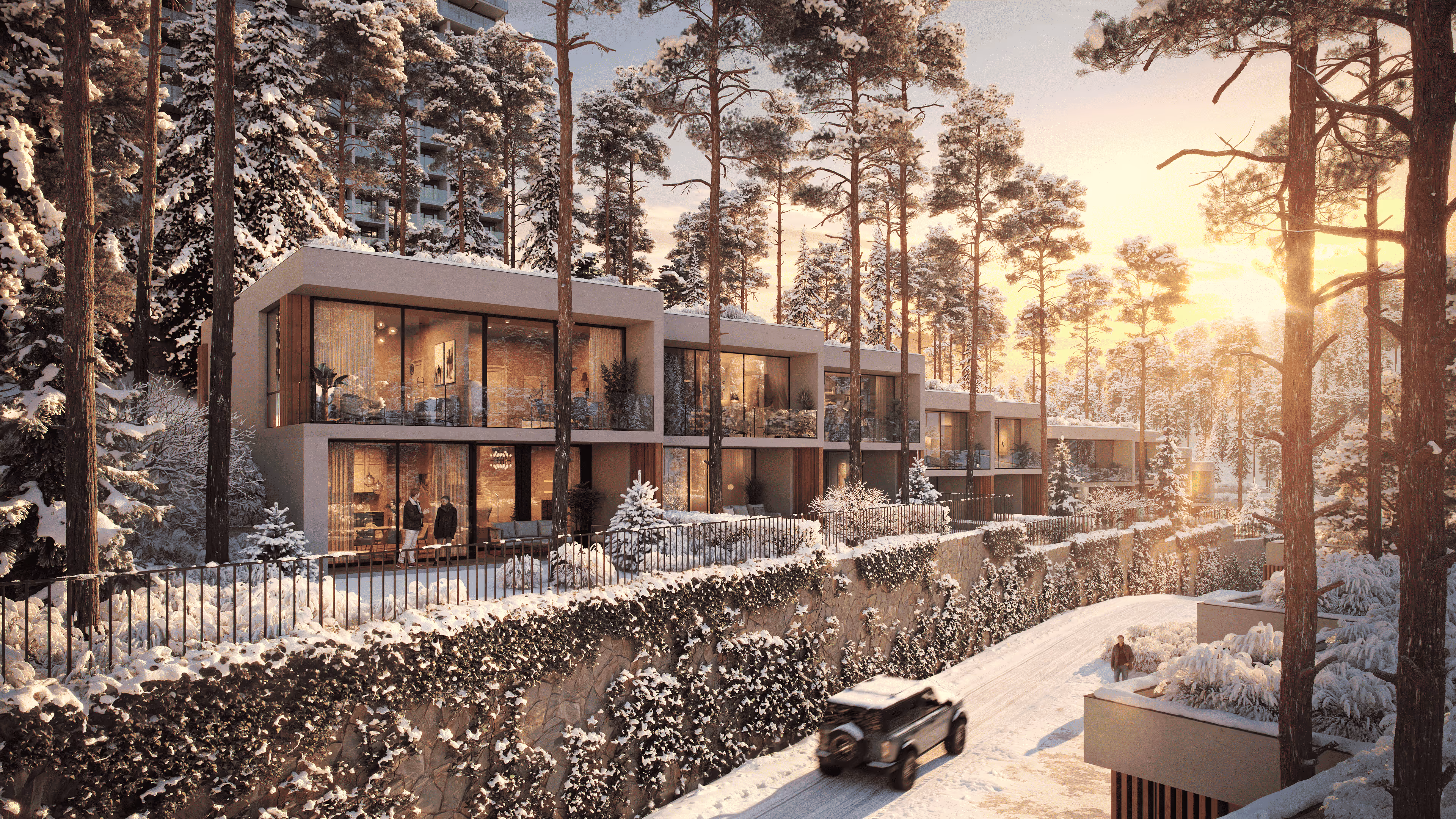 Унікальне розташування проєкту дозволяє більше не обирати між тишею лісу та рівнем п’ятизіркового сервісу. Тут — приватні вілли, сховані серед гір і сосен, але водночас на відстані кроку від найкращого SPA, панорамних ресторанів та витонченого сервісу, який вражає увагою до деталей